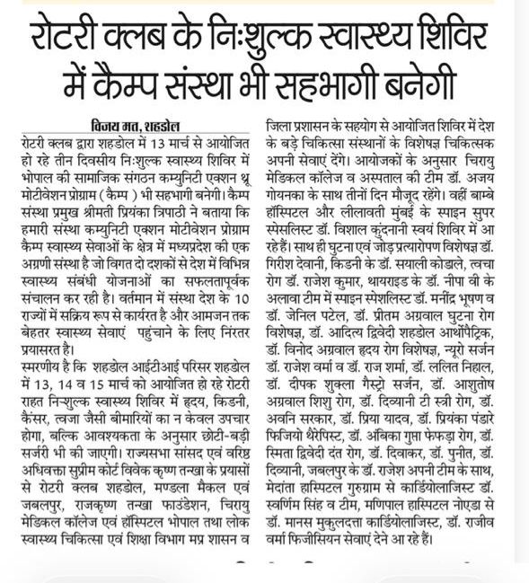 Operationalizing urban health dispensary and health camps